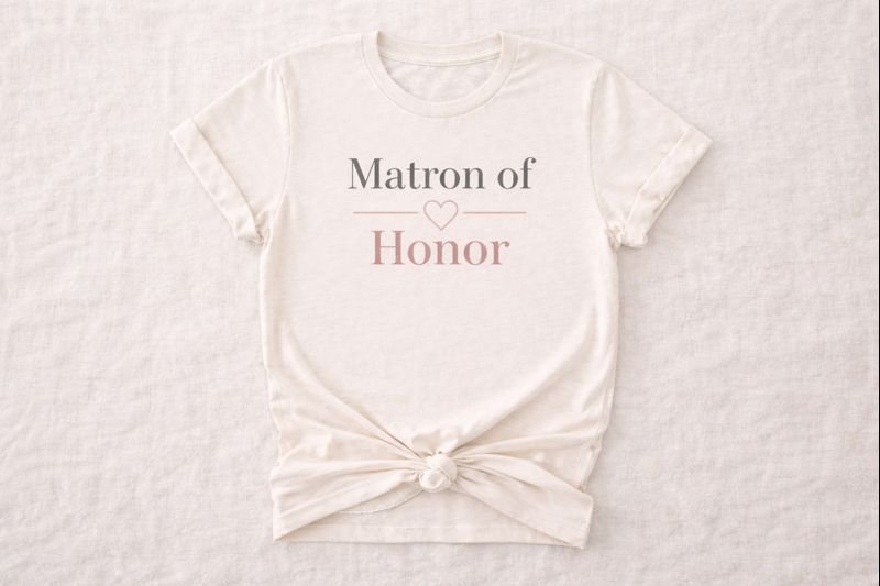 Celebrate your special role with style. The “Matron of Honor” tee blends soft comfort with a clean, modern design that pairs perfectly with your BRIDE, Maid of Honor, and I DO CREW shirts. Its boutique‑clean lettering and neutral aesthetic make it ideal for group photos, travel days, and all the pre‑wedding celebrations.