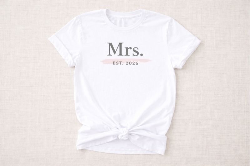 Celebrate your future last name in style. The “Mrs. EST. 2026” tee blends soft comfort with a clean, modern design that photographs beautifully. Whether you’re newly engaged, planning your big day, or soaking in the excitement of becoming a Mrs., this piece adds a personal touch to every moment.