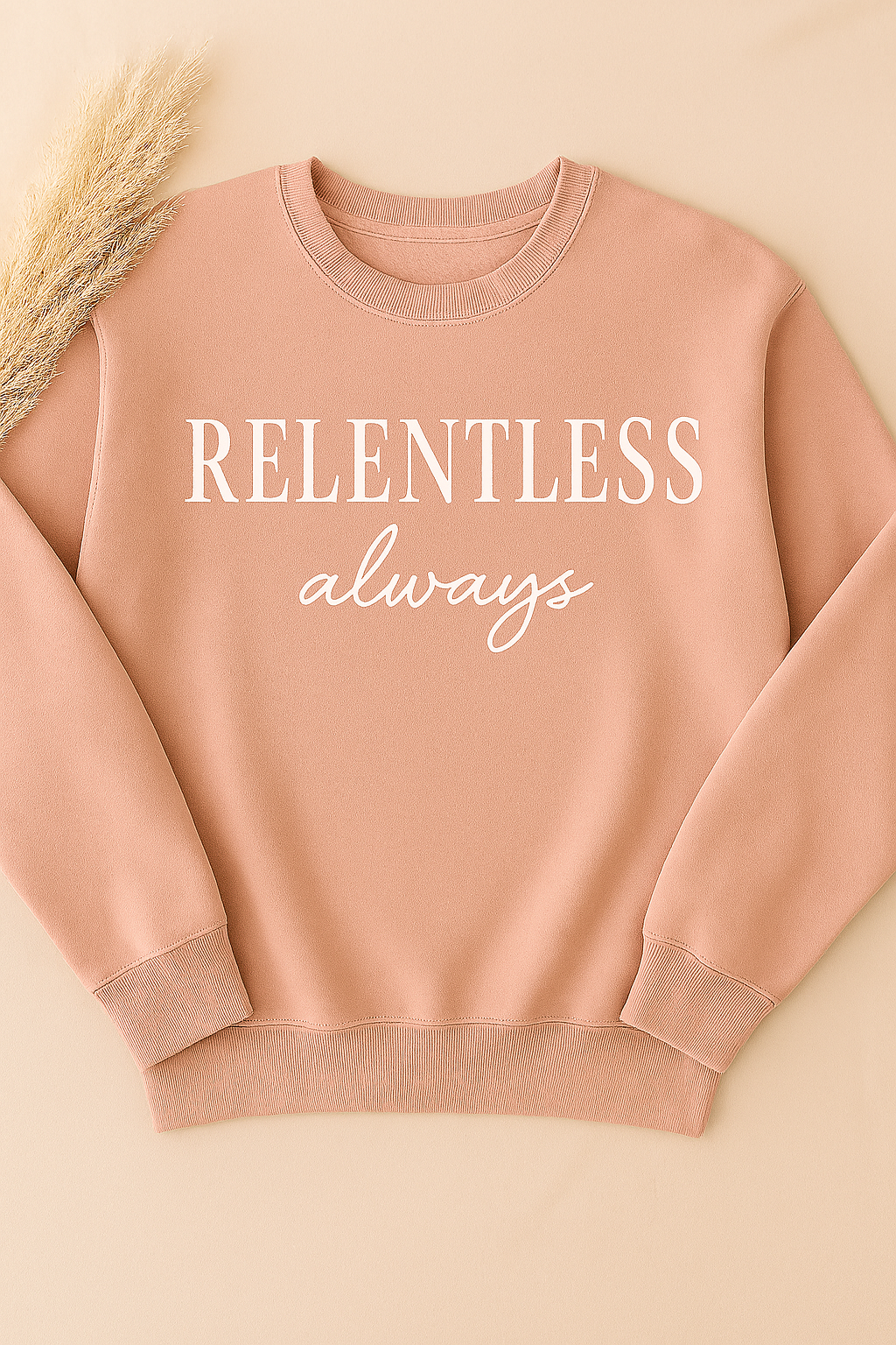 This sweatshirt features “RELENTLESS” in a tall serif font, stacked with intention, and paired with a handwritten “always” for emotional depth. It’s a wearable mantra for those who rebuild, rise, and never lose their softness.